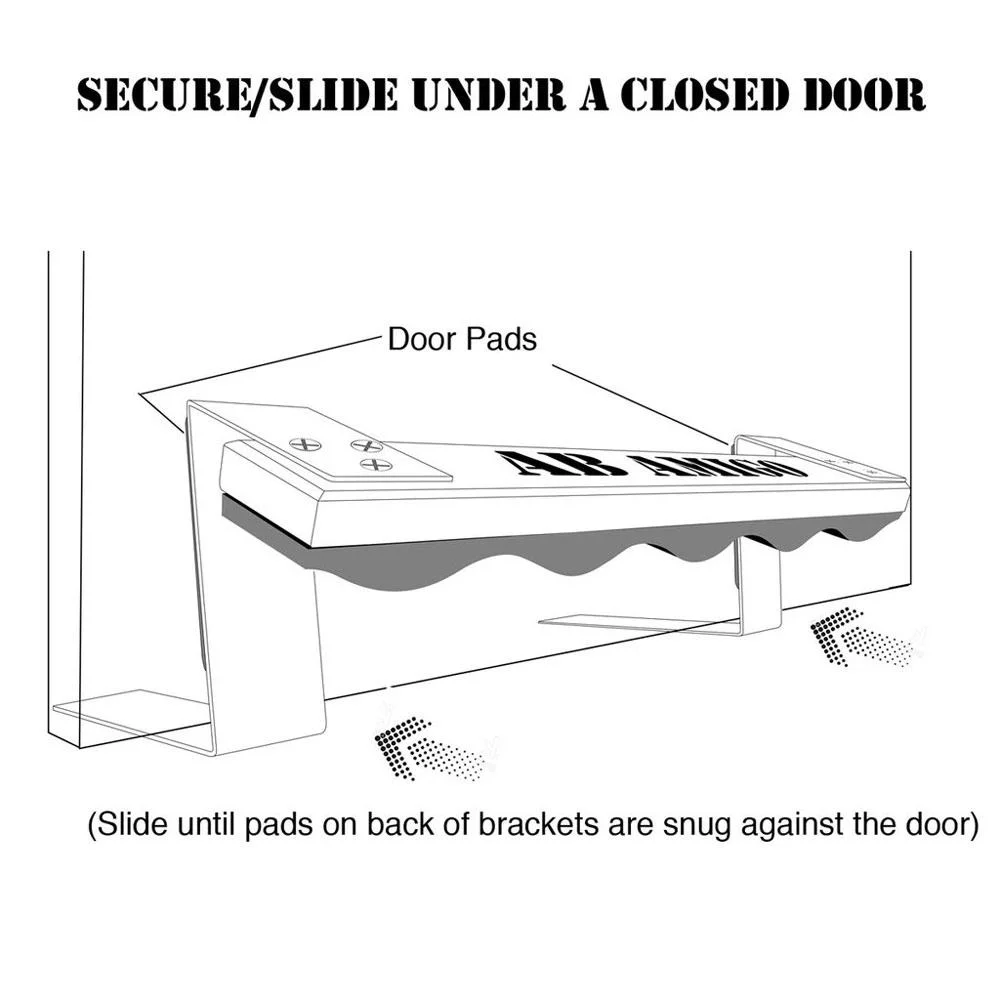 The Ab Amigo’s flat metal brackets slide easily under any standard door (a 0.75″ space between the door and floor works best) for easy set-up and removal. When positioned correctly, the vertical sections of the two brackets then form a snug hold on the front of the door, anchoring the raised foothold panel into place. A set of foam pads on the inside of the brackets prevent any scuffs or damage to your door, and additional thick padding under the foothold ensures optimal comfort for the user.