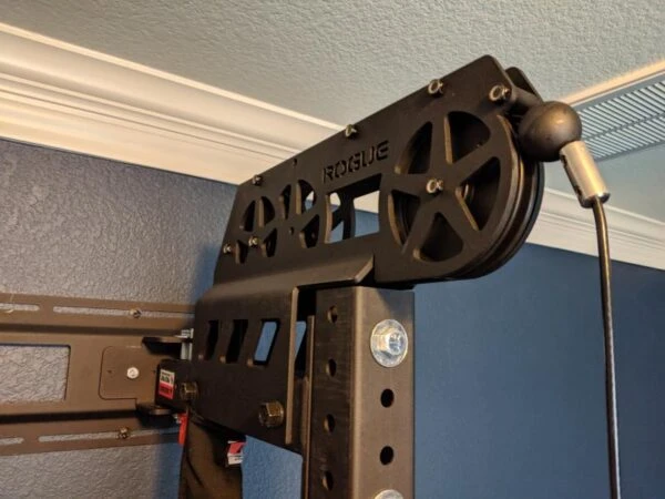 Designed exclusively for use with our 2×3” Rogue Infinity R-Series Power Racks, this version of the Slinger includes adjustable components for set-up on a 90” unit, with optional Rogue attachment straps and bands available to add to the package. Customers may also choose to purchase custom 24” or 43” Slinger Crossmembers, which include laser-cut holes for the cable to pass through.